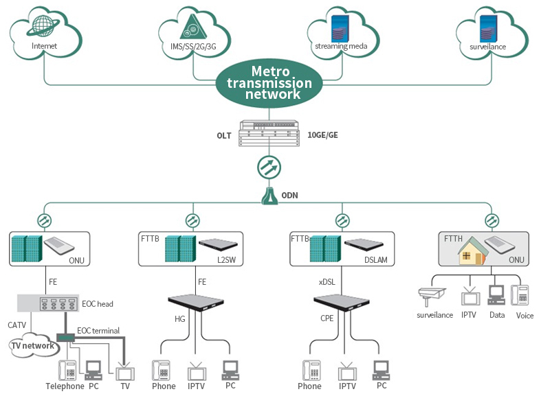統(tǒng)一平臺(tái)支持EPON/GPON/10GE PON接入方式,可平滑升級(jí)、無縫演進(jìn)