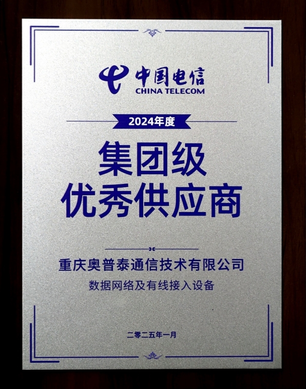 近日,在中國電信的供應(yīng)商評選中,奧普泰再次脫穎而出,榮膺中國電信2024年度“集團(tuán)級優(yōu)秀供應(yīng)商”稱號。